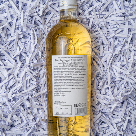 Vinen Tsinandali er lavet af to lokale, hvide druesorter: Rkatsiteli og Mtsvane. Denne kombination giver vinen en lys, strågul farve.
