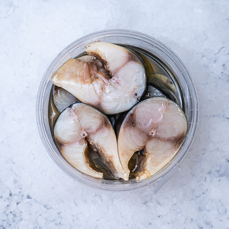 Vores marinerede makrel er et produkt af høj kvalitet, kendt for sin rige smag og sundhedsmæssige fordele. Makrelfileten har en fast, men alligevel fin tekstur og er marineret i olie med tilsatte krydderier, der fremhæver dens naturlige smag. Dette produkt er en fremragende kilde til Omega-3-fedtsyrer, som er afgørende for din krop.