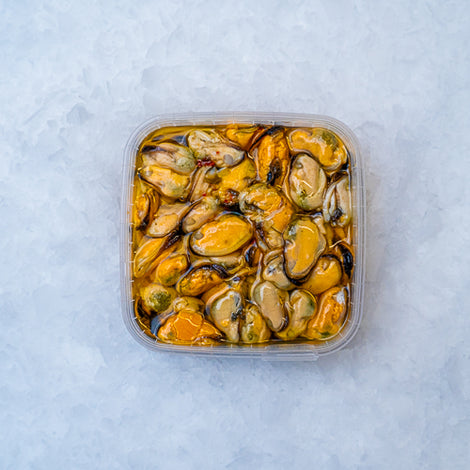 Vores marineret muslinger er en ægte havdelikatesse, der udmærker sig ved sin mørhed og raffinerede smag. Muslingekødet er omhyggeligt forarbejdet og marineret i olie med tilsatte krydderier, der fremhæver deres naturlige sødme og gør dem klar til at spise, så snart pakken åbnes. De er perfekte til en hurtig, men velsmagende snack eller som en del af en udsøgt forret.
