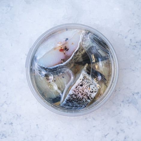 Marineret Sillefilet: Færdiglavet, Benfri Snack Produktnavn: Marineret sildefilet (benfri), spiseklar Latinsk navn: Clupea harengus Eksklusiv Kvalitet fra Fishmaster Vores marinerede sildefilet er indbegrebet af bekvemmelighed. Fisken er allerede færdigbehandlet: benfri og uden skind, skåret eller klar til at blive skåret. Fileten marineres i en klassisk lage med tilsætning af eddike, sukker og krydderier, hvilket giver den en pikant sød-sur smag og bevarer kødets møre, faste tekstur. ...