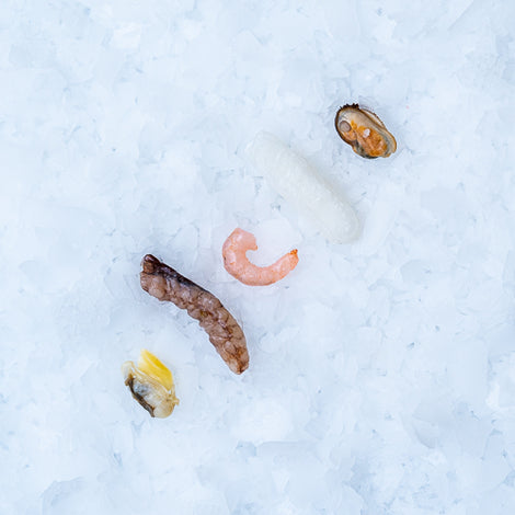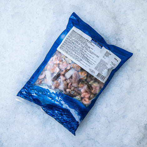 Skaldyrscocktailen kombinerer forskellige smagsnoter og teksturer: fast, men mør blæksprutte, sødlige rejer, bløde muslinger og faste blæksprutteringe. Denne kombination er fremragende til at tilføje til supper, risretter, gratiner eller til hurtig stegning med dine yndlingssaucer.