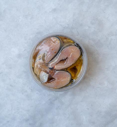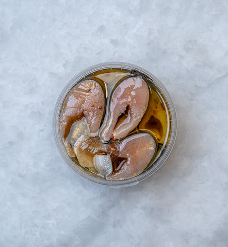 Vores marinerede ørred er det ideelle valg for dem, der sætter pris på elegance og bekvemmelighed. Ørreden udmærker sig ved sit møre, lyserøde kød og er en fremragende kilde til Omega-3 fedtsyrer. Fisken er skåret i pæne stykker og marineret i olie af høj kvalitet med tilsætning af krydderier. Denne tilberedningsmetode gør kødet utroligt saftigt, blødt og fyldt med smag. Dette er et helt spiseklart produkt.